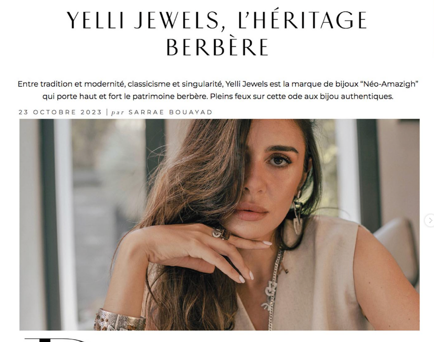 "Because she wants to give new life to the Moroccan Amazigh handicraft, the young and talented designer Samia Benbrahim treats us with her brand "Yelli Jewels" which presents a sensational universe of silver jewellery".