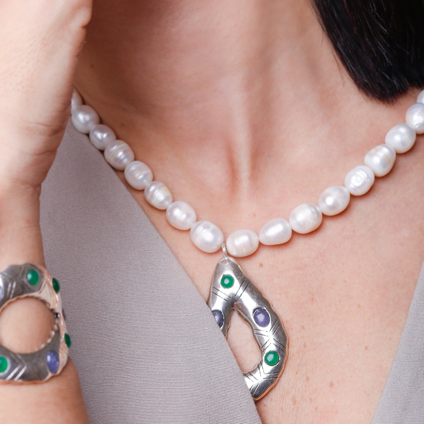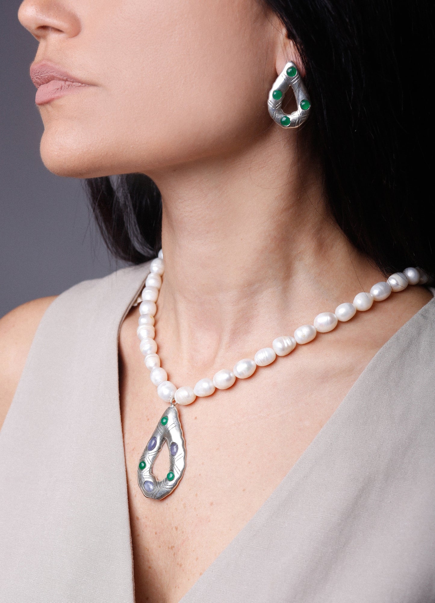 - Materials: Silver 925, Pearls, Jade Stones, Sapphire fragments Stone