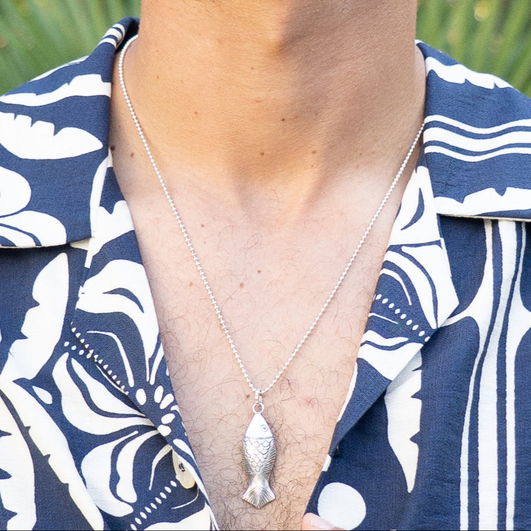 The iconic finely crafted 925 silver fish, symbol of adventure and deep-sea exploration, now takes center stage on a classic silver chain, embodying understated sophistication. This unisex necklace offers a sleek and versatile way to connect with the essence of the ocean and the vibrant energy of summer.