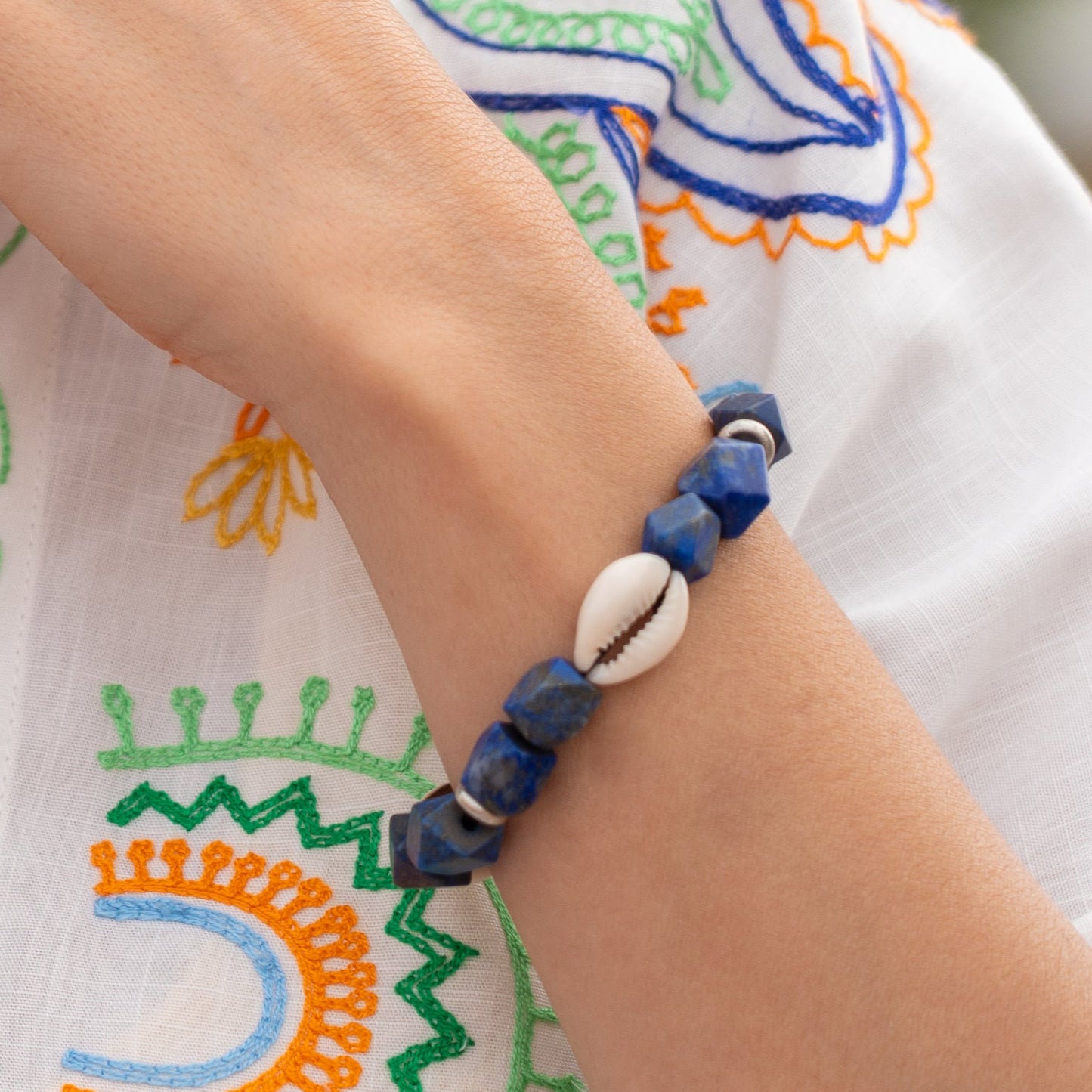 - Handcrafted Materials: Silver 925, Authentic Lapis Lazuli stones, Natural Cowrie Shells.