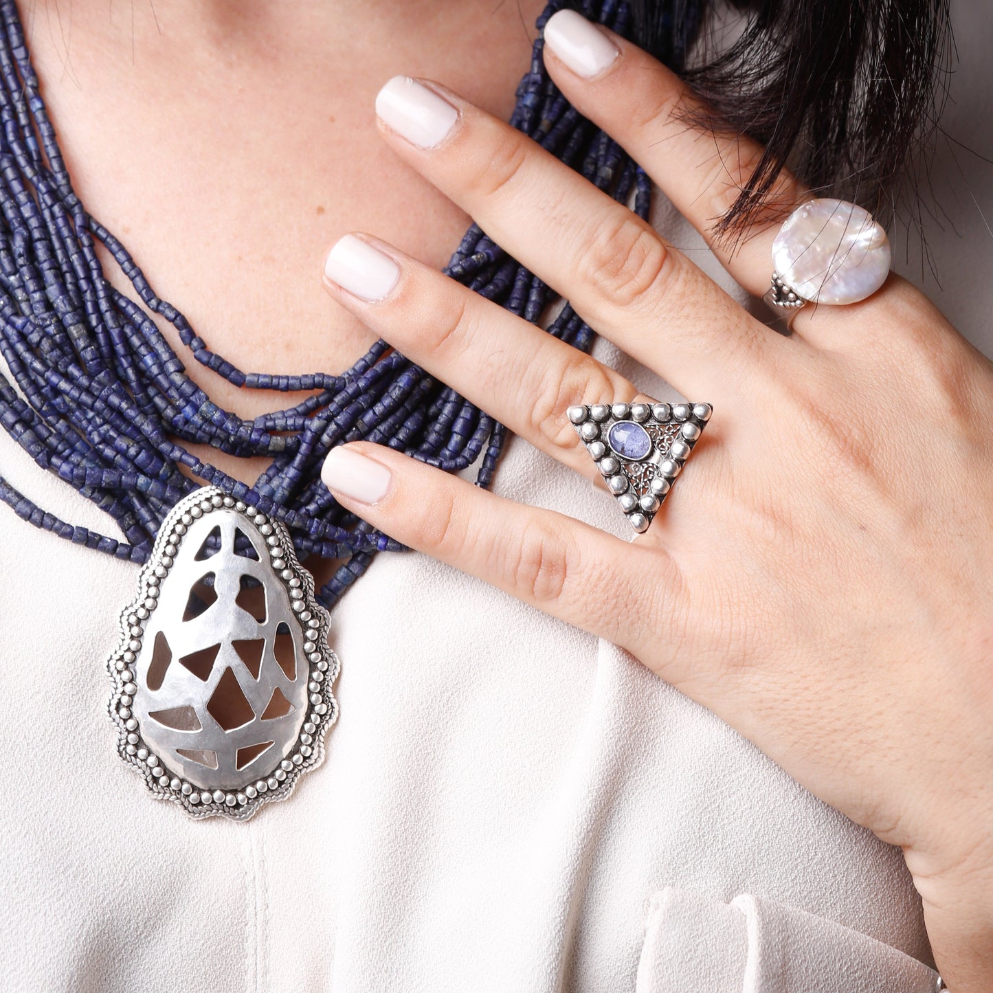 NOTE DU DESIGNER : Comme toutes nos ressources proviennent de sources éthiques et que chaque bijou est fabriqué à la main par nos artisans, chaque pièce est unique, ce qui signifie que les pierres et le bijou dans son ensemble peuvent légèrement varier en forme, taille, poids et couleur, mais c'est la beauté de l'artisanat, votre bijou sera toujours le vôtre et le vôtre seul.