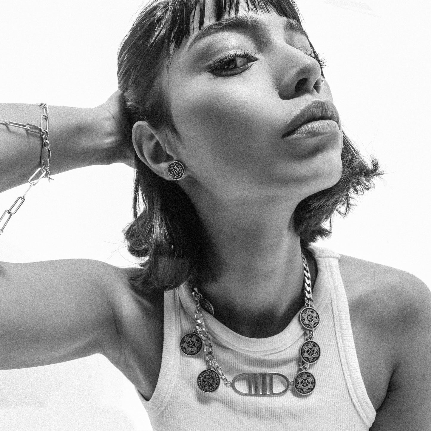 Ce collier est sans conteste la pièce maîtresse de la collection. Imposant comme les anciens colliers amazighs, ce collier est une œuvre qui donne une seconde vie à six pièces de monnaie anciennes authentiques datant du protectorat.