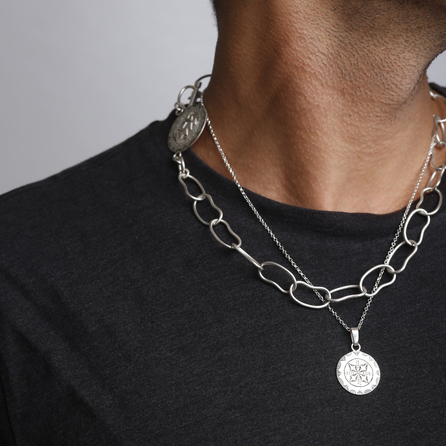 - Collier fin avec chaîne fine et pendentif (rosace amazighe)