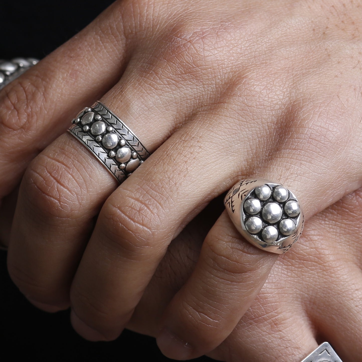 - Bague solide cloutée et ciselée